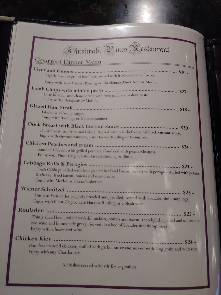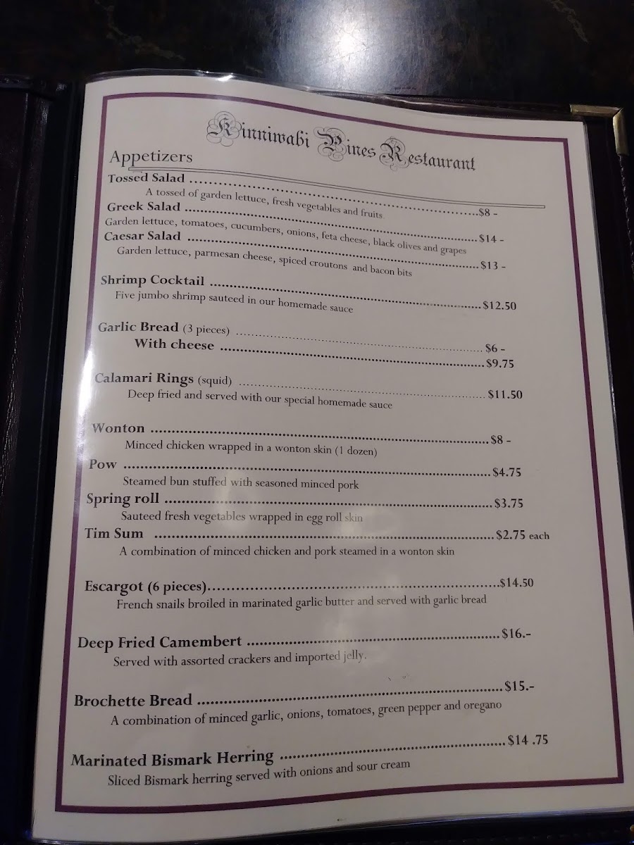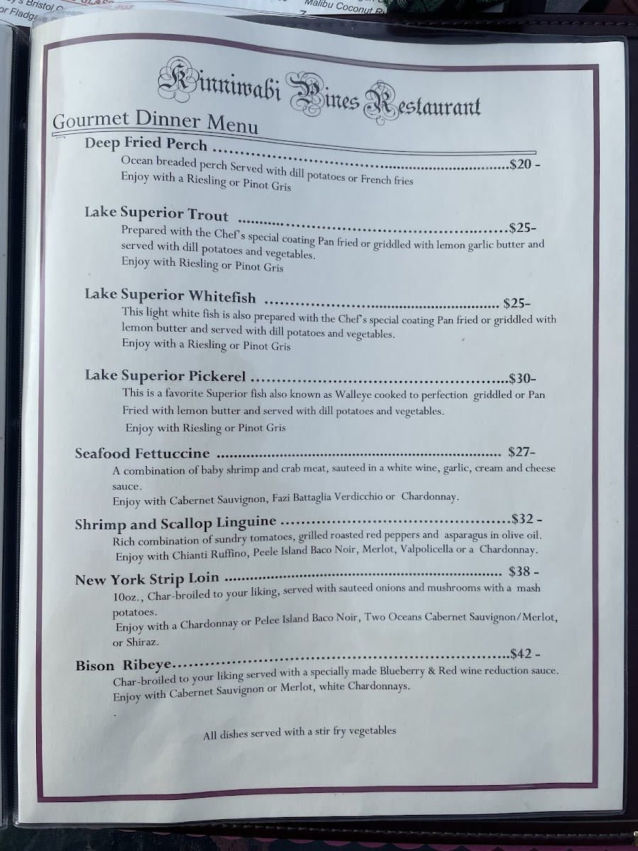 Kinniwabi Pines Restaurant Menu (2025 Update)